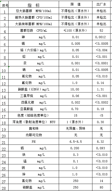 2019年12月出廠水檢測表