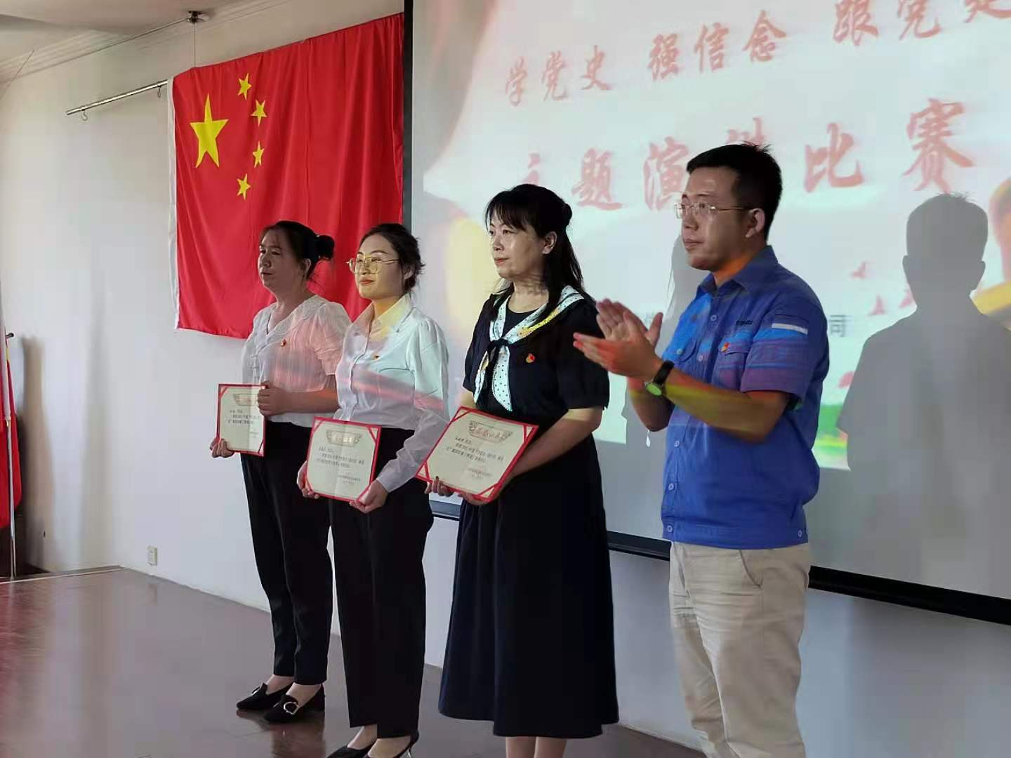 他們時而激情高昂,時而低沉頌吟,時而熱情洋溢,時而深情飽滿,制作的精美PPT也成為了他們加分的亮點,大氣穩(wěn)重的臺風(fēng)和富有感染力的語言,真切地表達了對黨的忠誠、對人民的感恩以及對供水事業(yè)的熱愛,堅定了廣大干部職工牢記使命擔(dān)當(dāng),推動公司高質(zhì)量發(fā)展的堅定決心。